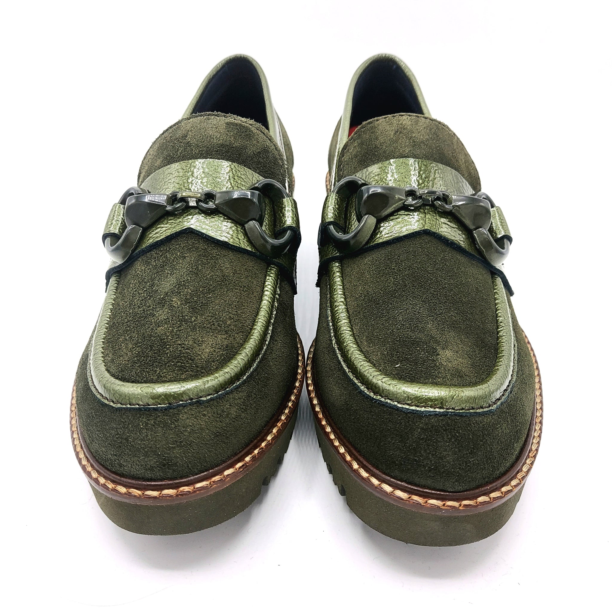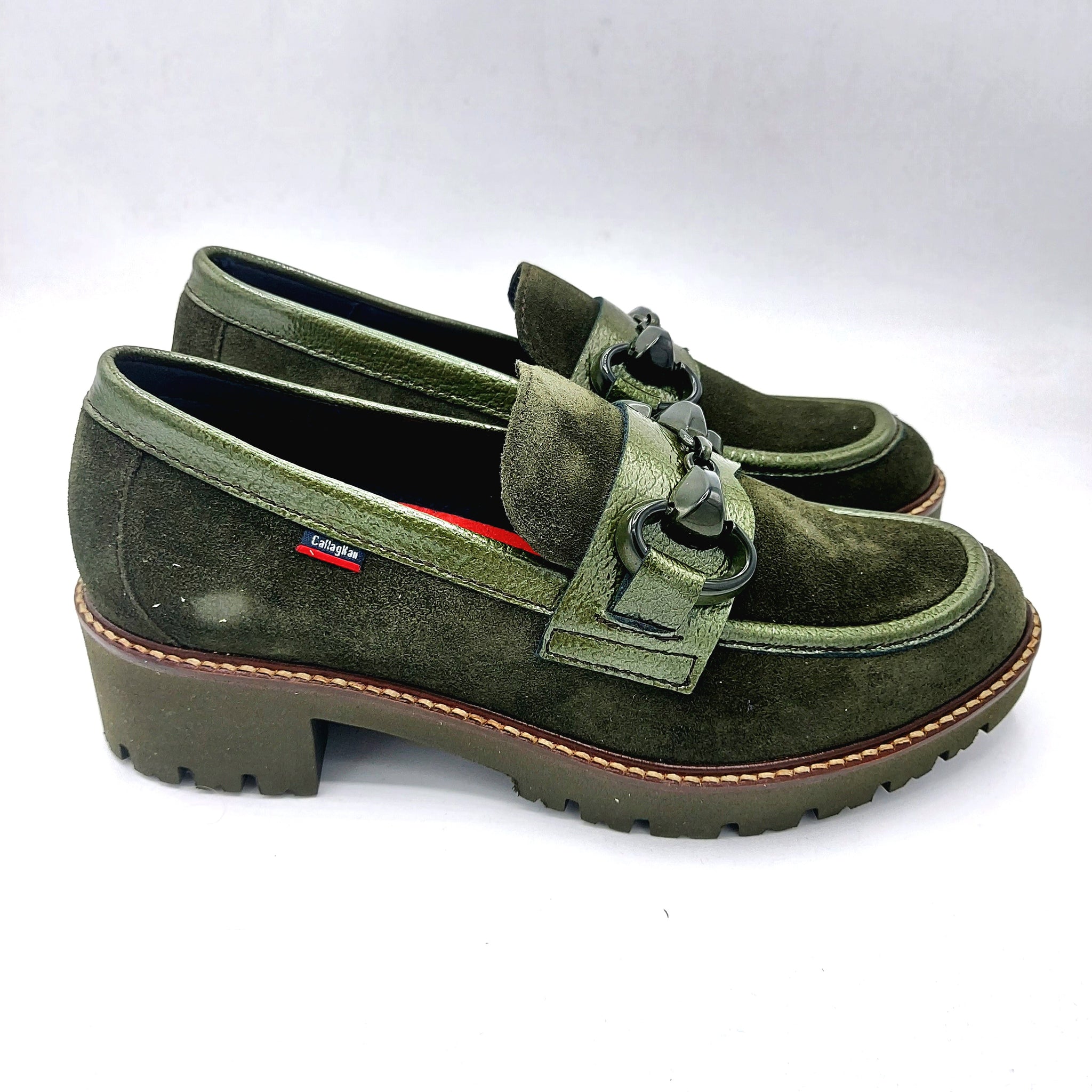 Il mocassino Callaghan 13458 verdone unisce la morbidezza della pelle scamosciata con dettagli in vernice coordinata, impreziositi da un morsetto tono su tono. Questo design offre comfort e stile, ideale per chi cerca una calzatura elegante ma resistente per ogni occasione.