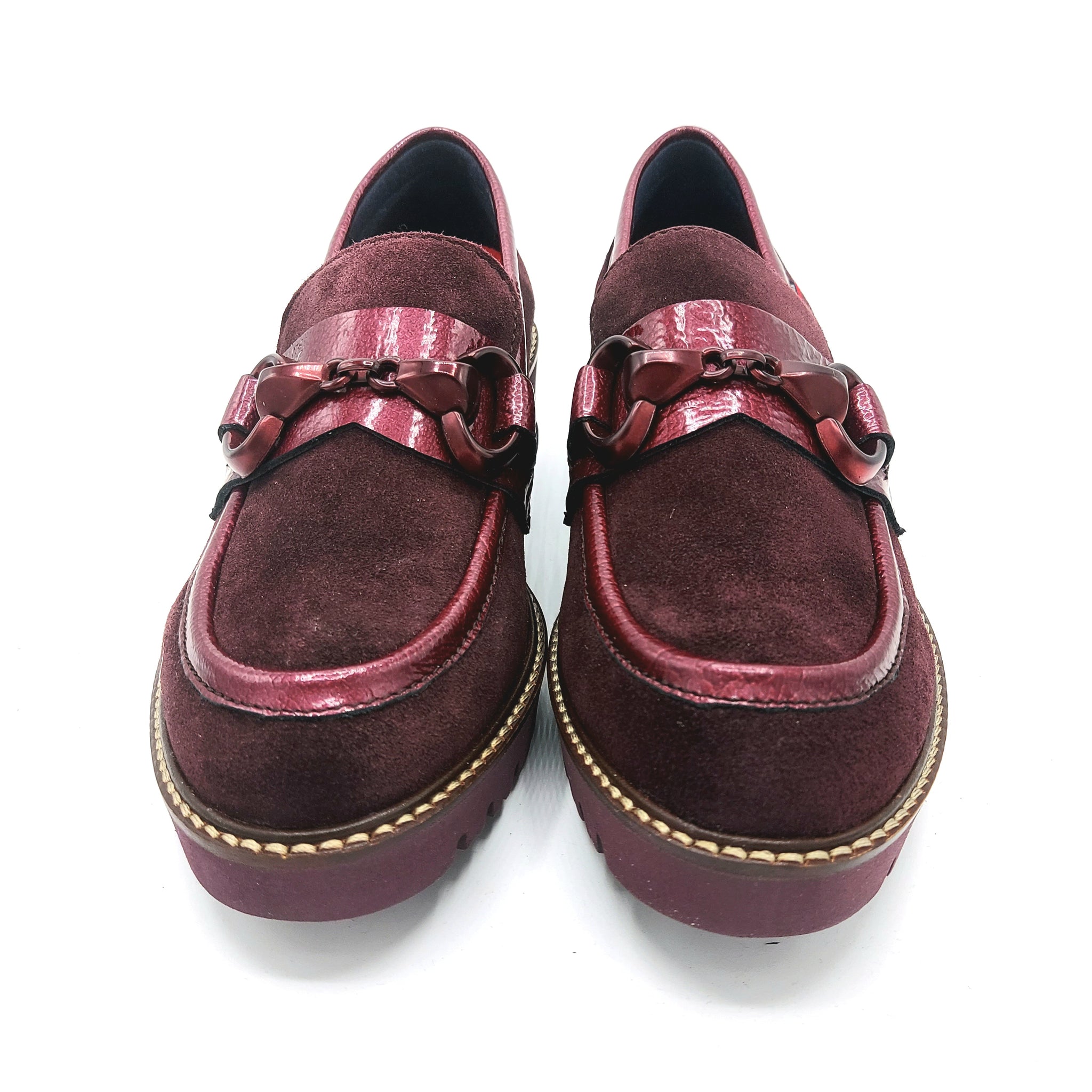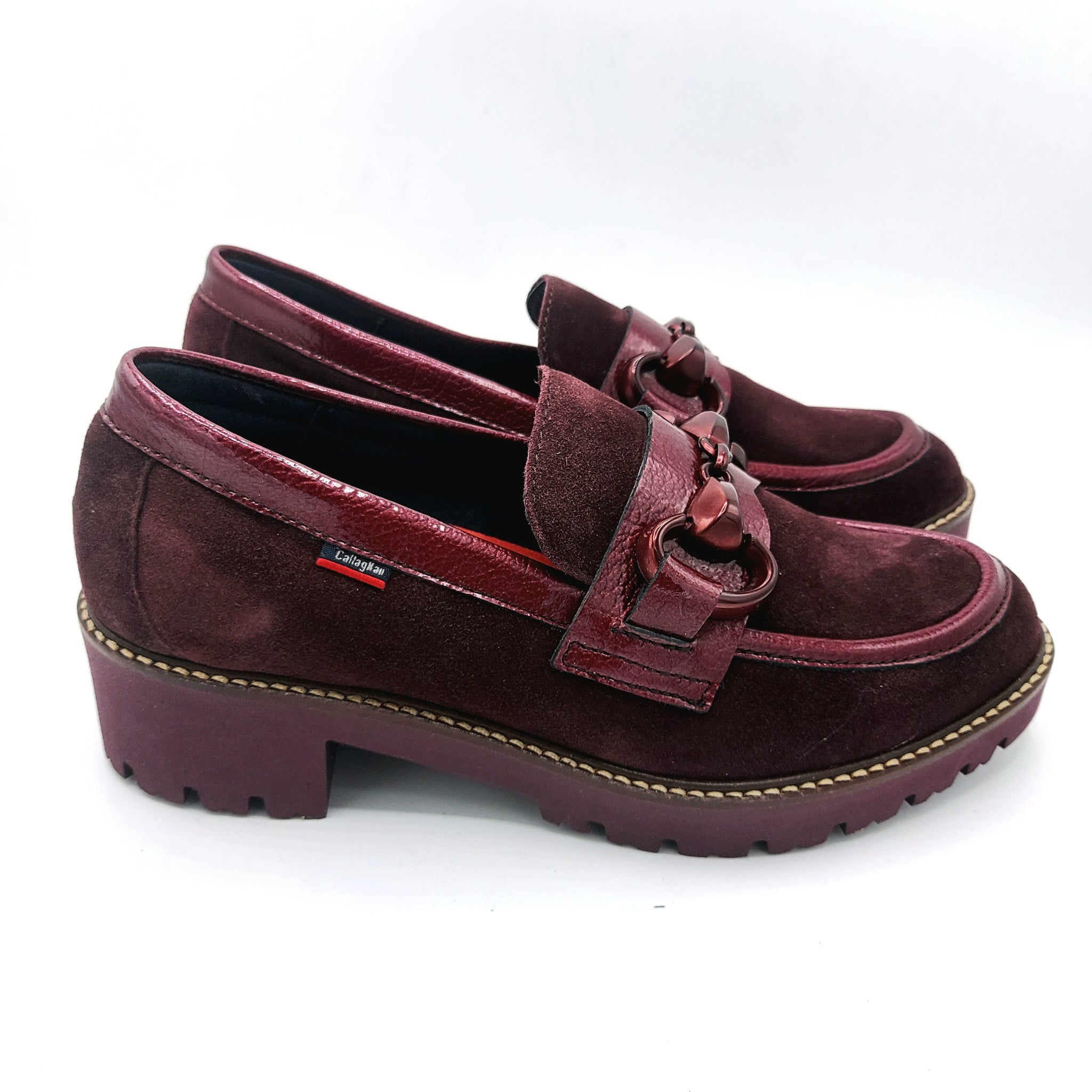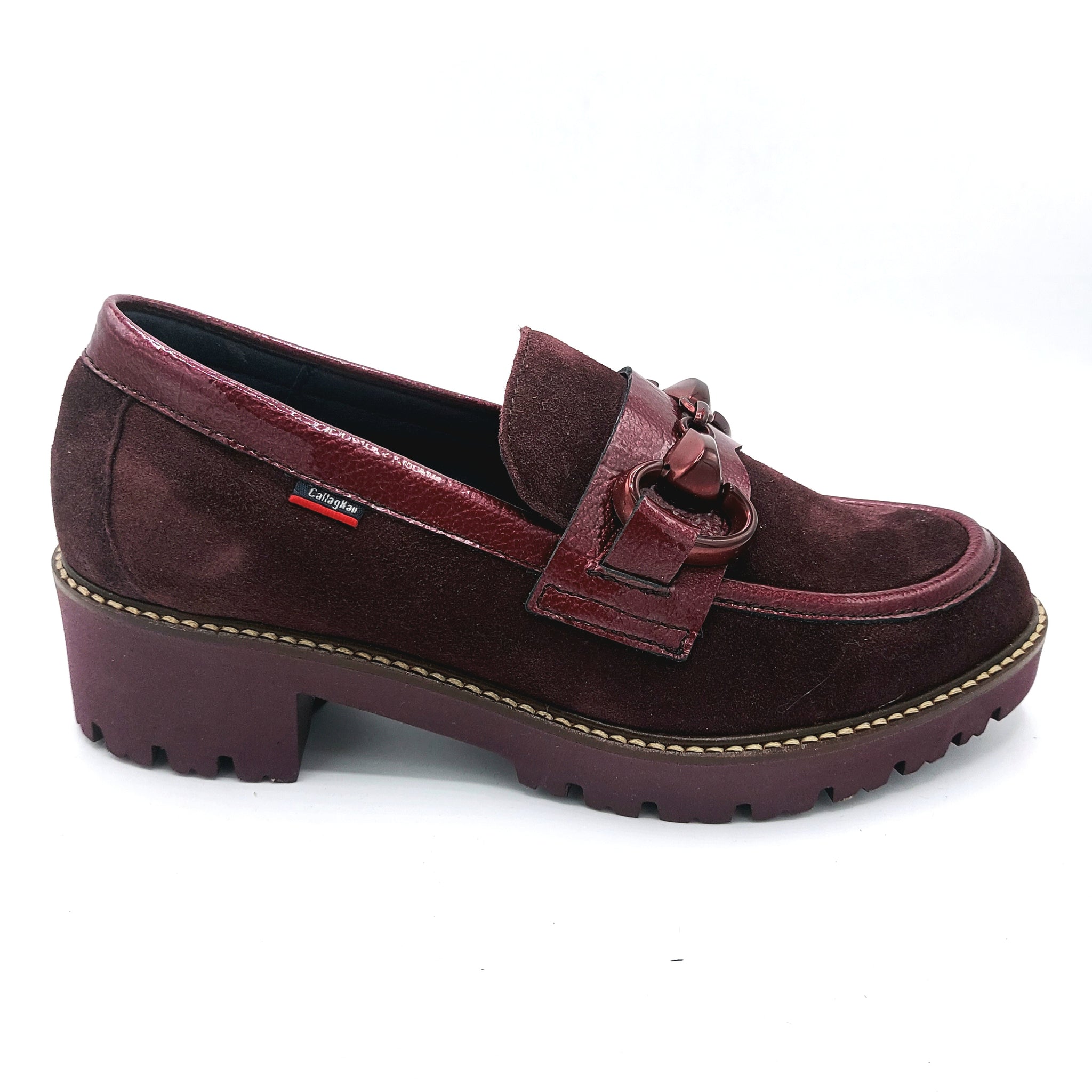 Il mocassino Callaghan 13458 prugna unisce la morbidezza della pelle scamosciata con dettagli in vernice coordinata, impreziositi da un morsetto tono su tono. Questo design offre comfort e stile, ideale per chi cerca una calzatura elegante ma resistente per ogni occasione.