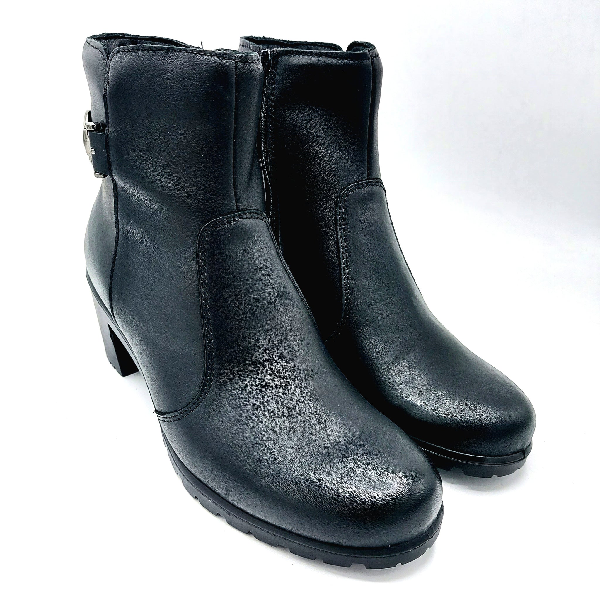 Gli stivaletti Enval 8755000 nero combinano comodità e praticità grazie alla comoda cerniera, per una calzata semplice e veloce. Il tacco da 6 cm e il dettaglio decorativo laterale aggiungono un tocco di eleganza senza rinunciare alla stabilità, mentre la suola in gomma flessibile garantisce passo sicuro e comfort durante tutta la giornata. Ideali per chi cerca stile e funzionalità in ogni occasione.