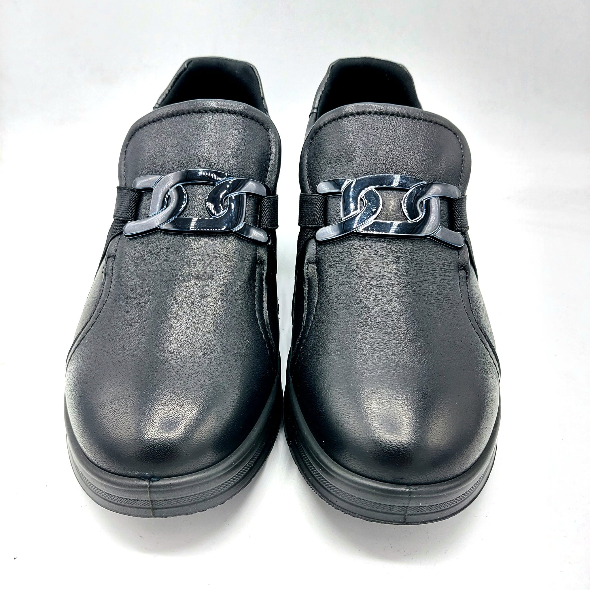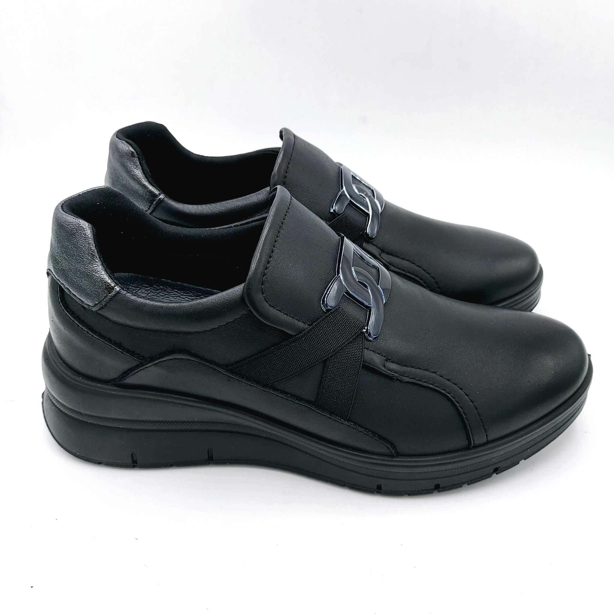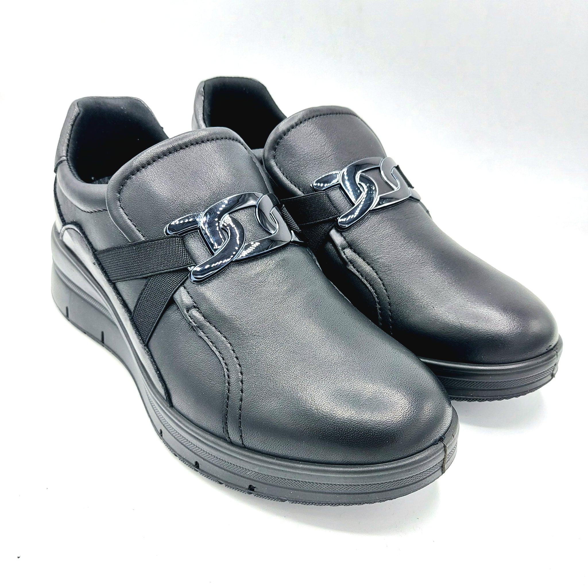 Enval 8778000 nero mocassino donna in pelle con decorazione frontale e soletta estraibile in memory foam