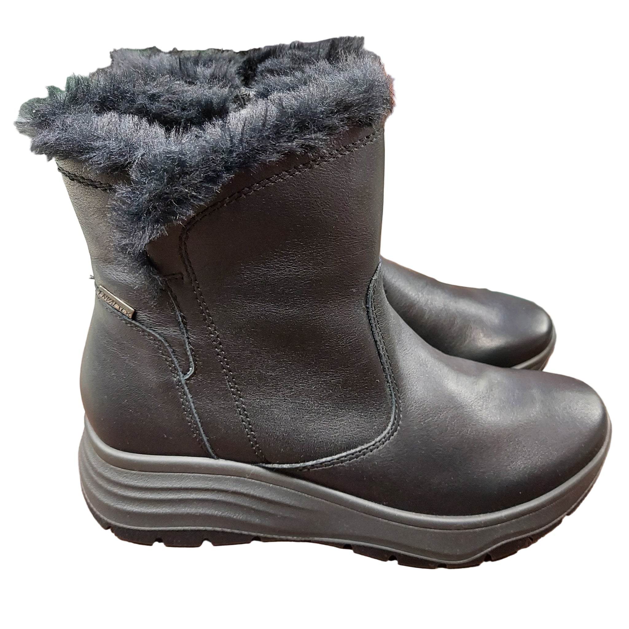 Questo stivaletto Enval 8780700 in pelle nera unisce comfort e calore grazie alla fodera in pelliccia sintetica, ideale per proteggerti dal freddo. La pelle di alta qualità assicura durata e uno stile elegante, perfetto per affrontare le giornate invernali con sicurezza e comodità.