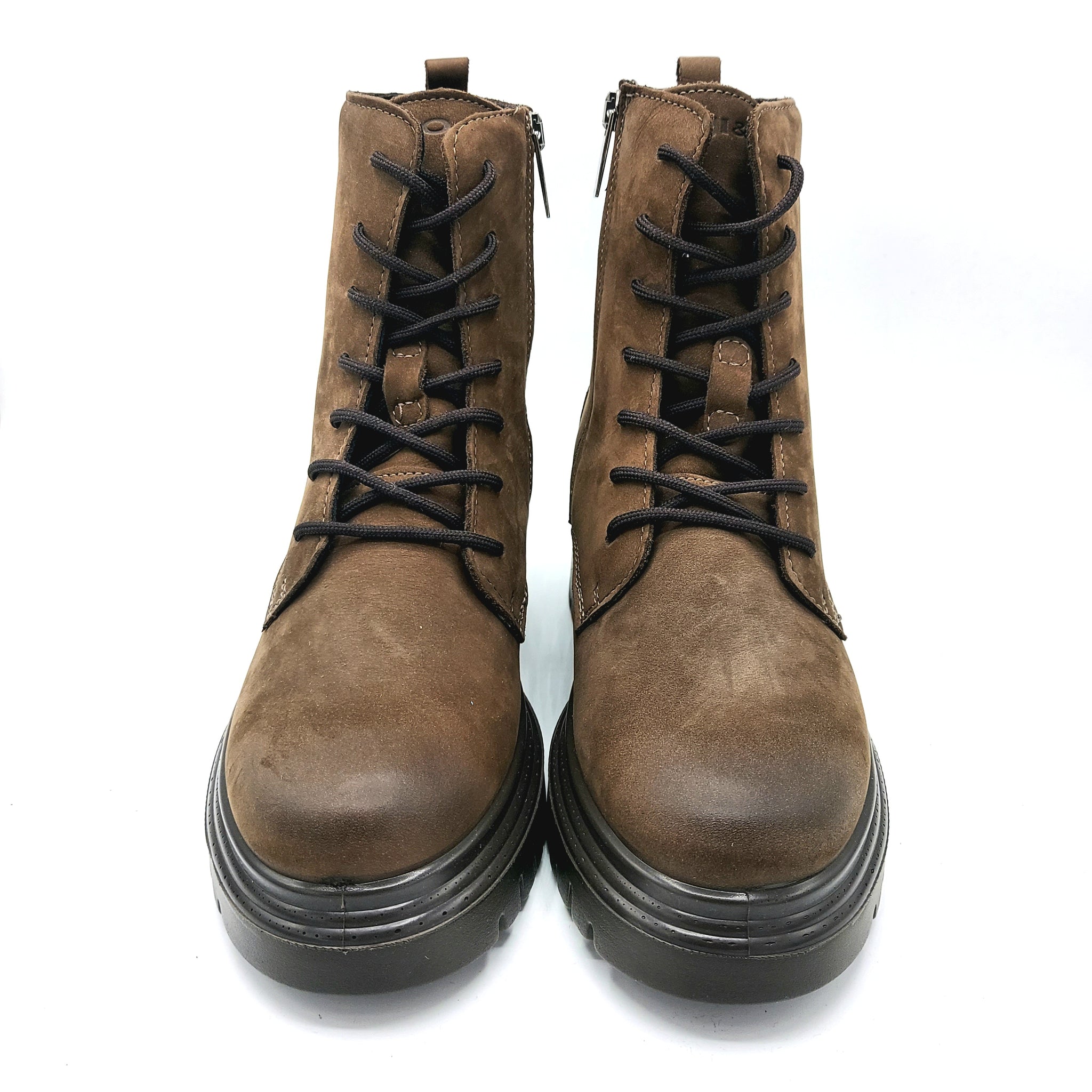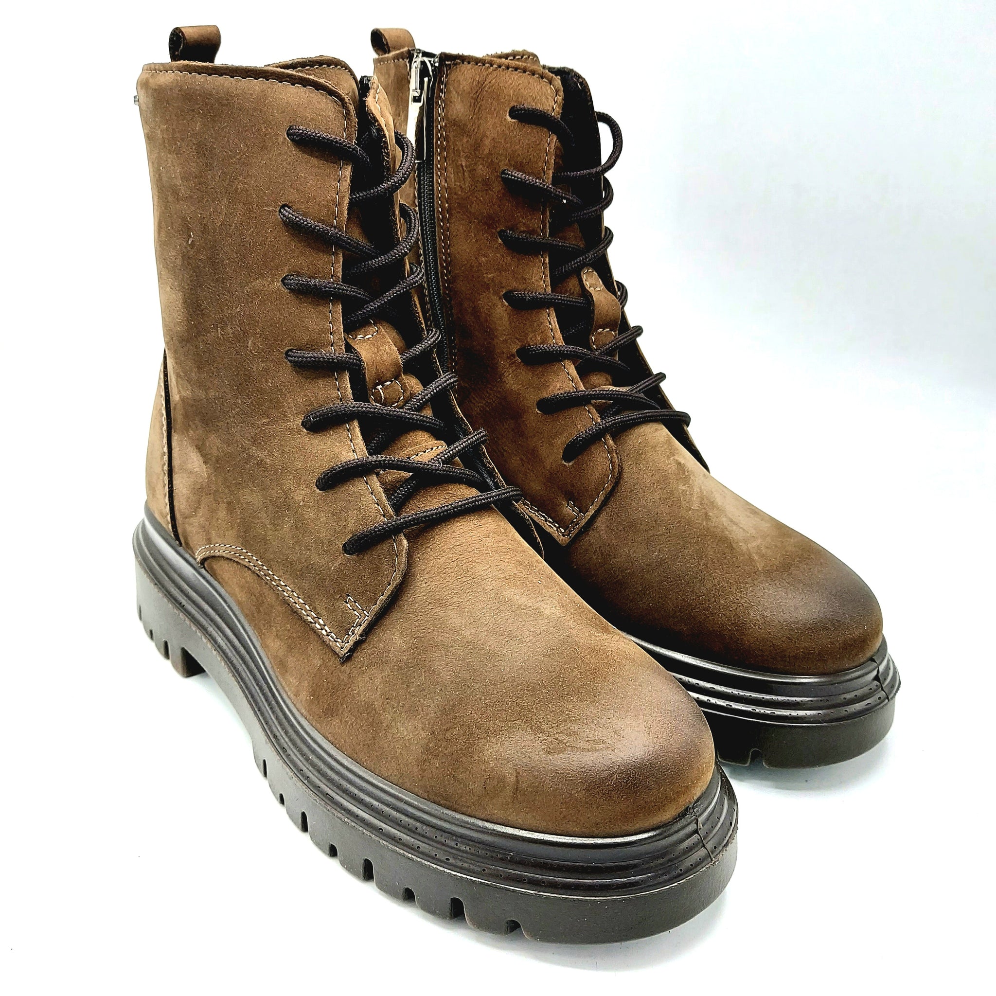 Questo anfibio da donna in nabuk offre una calzata comoda e sicura grazie alla chiusura laterale con cerniera. Il design stringato aggiunge un tocco di stile classico, mentre la pelle di alta qualità garantisce resistenza e comfort. Perfetto per chi cerca una calzatura versatile e pratica da indossare ogni giorno.