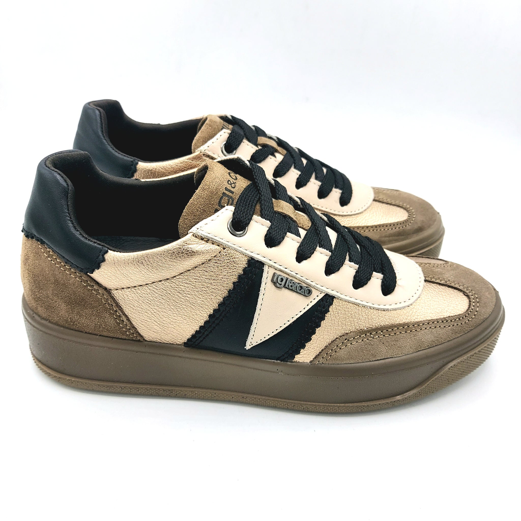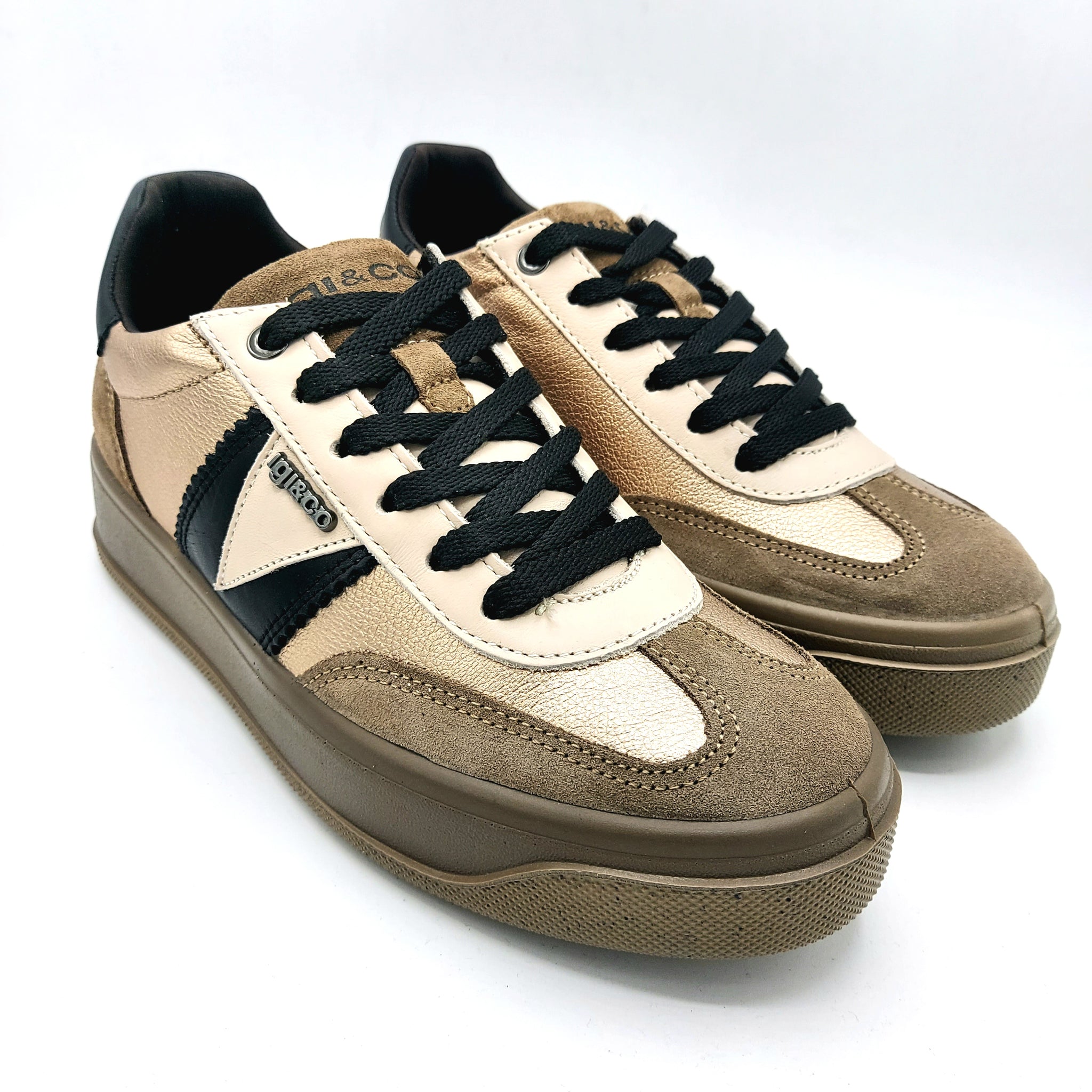 Igi&co 8669922 fango sneakers donna stringata con riporti in beige, platino e nero
