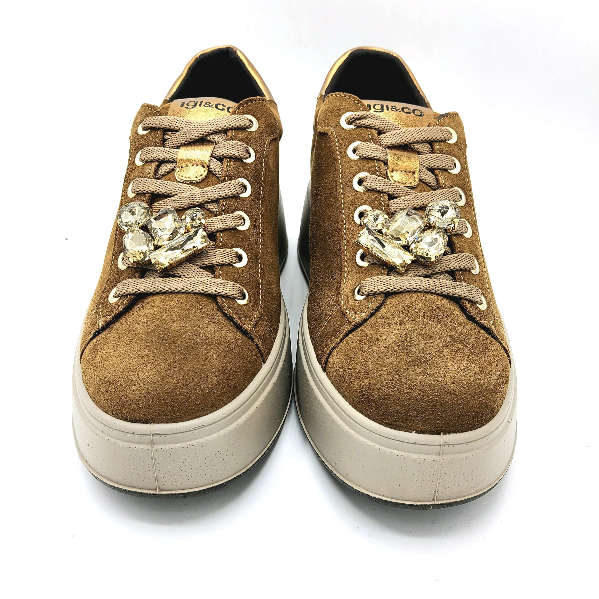 Igi&co 8671244 cuoio sneakers donna in pelle scamosciata con decorazione removibile di strass