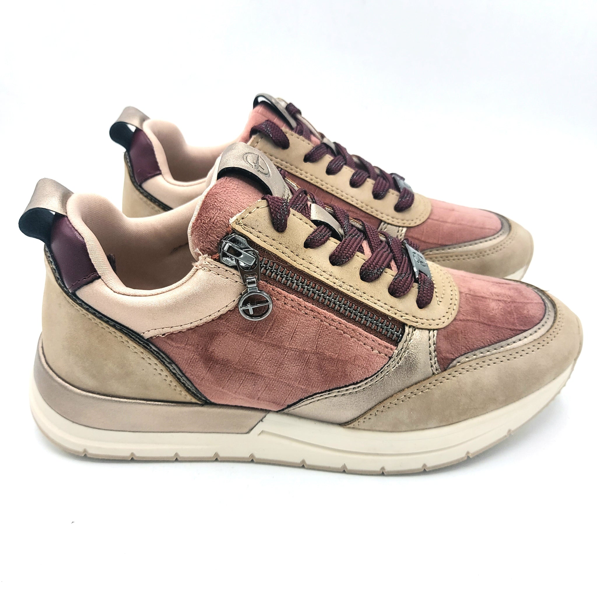 Le sneakers da donna Tamaris 1-23732-41 in rosa antico uniscono stile e praticità. Realizzate in materiale vegano, offrono una scelta sostenibile senza rinunciare all’eleganza. La chiusura stringata garantisce una calzata personalizzata, mentre la zip laterale facilita la calzata quotidiana. Perfette per chi cerca comfort e design responsabile in ogni passo.