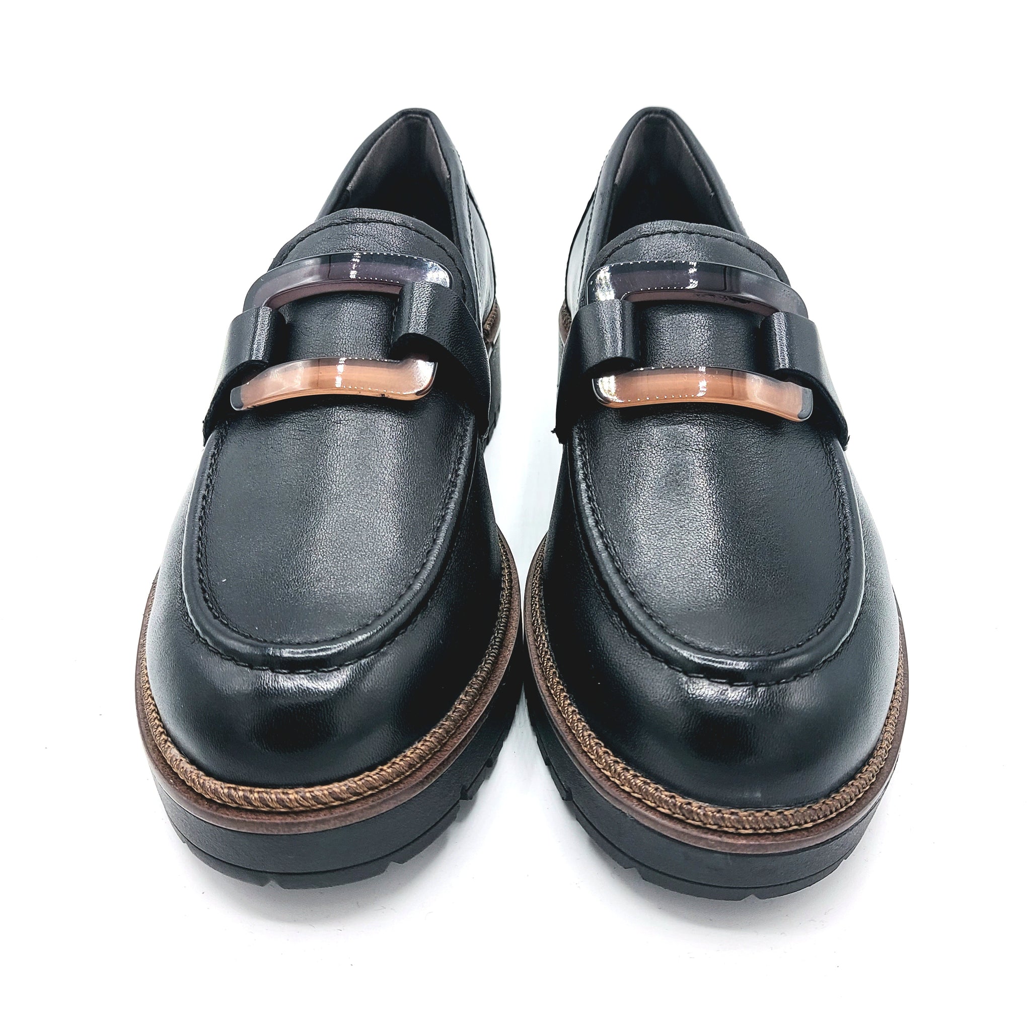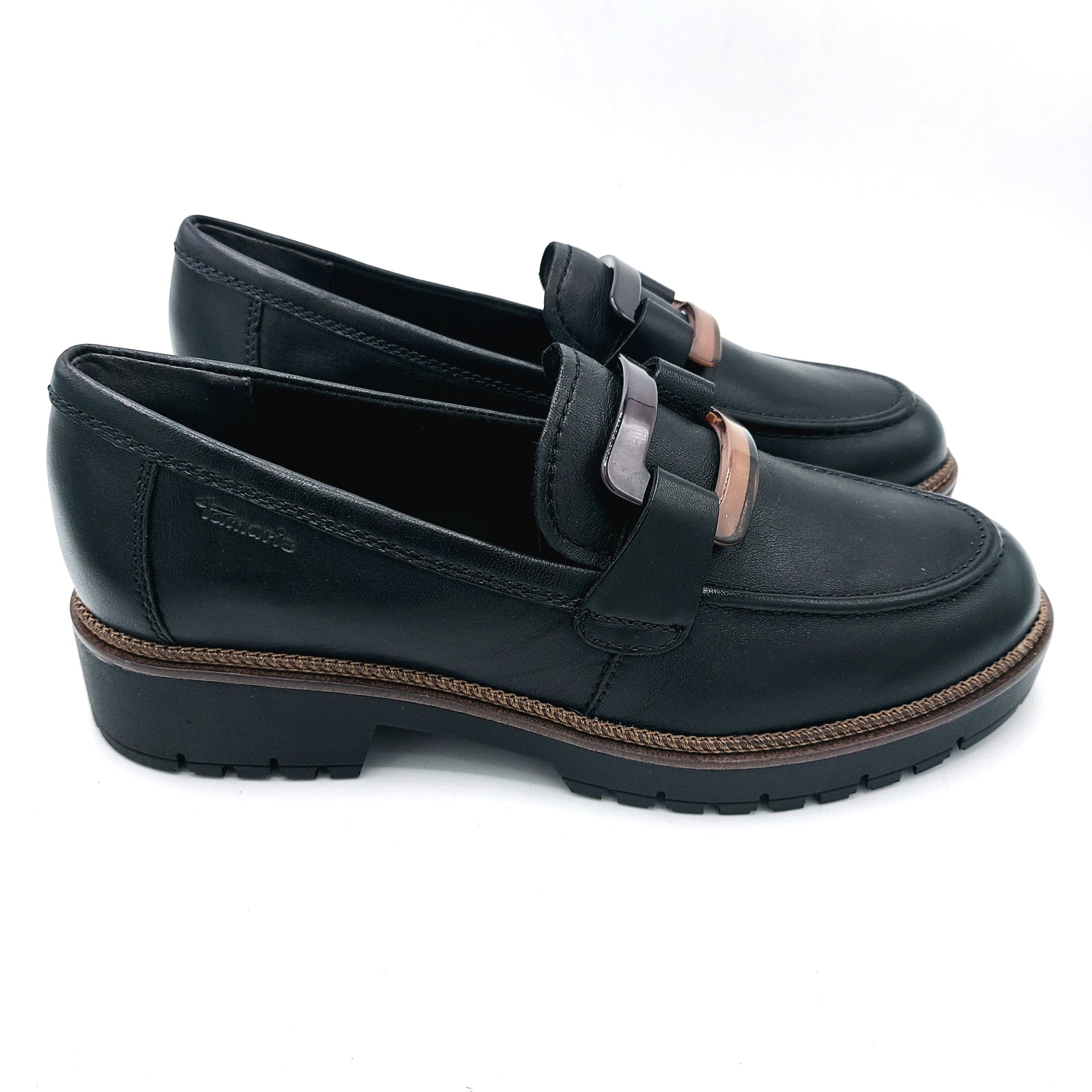 Tamaris 1-24722-43 nero mocassino donna in pelle con dettaglio decorativo frontale