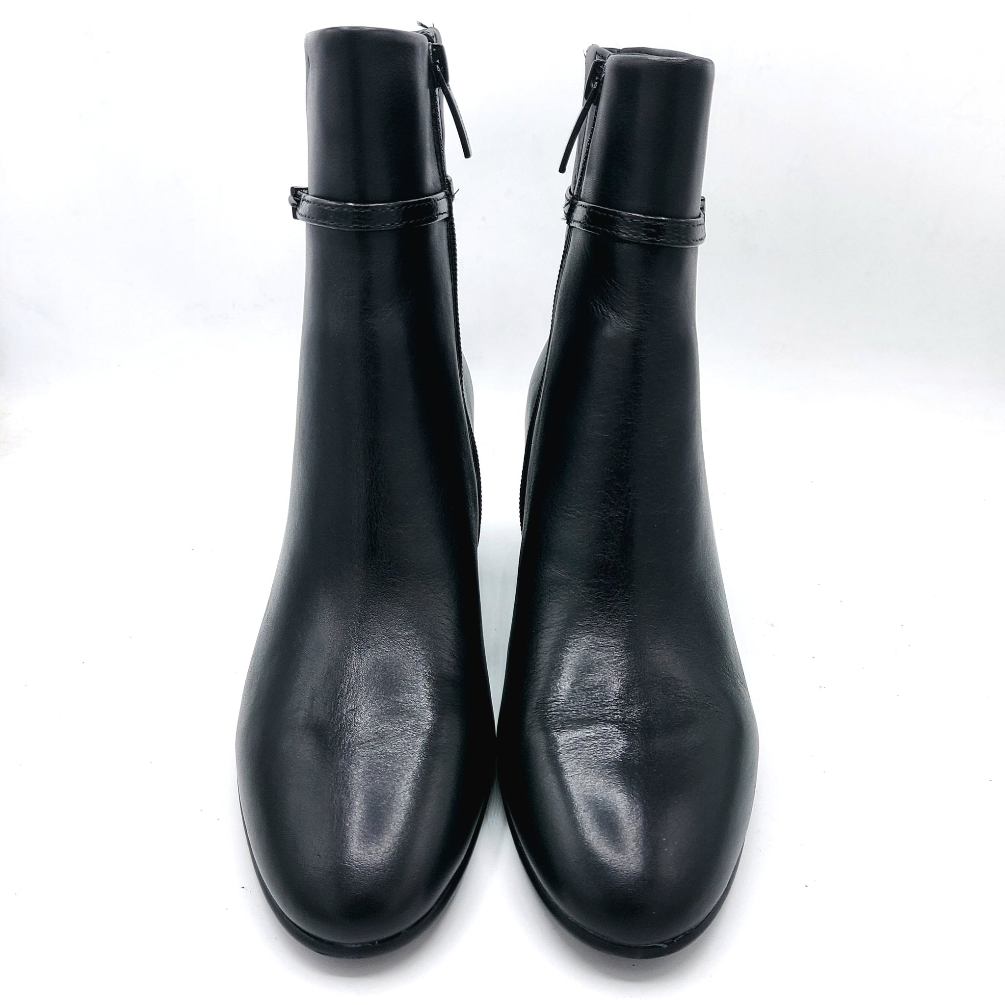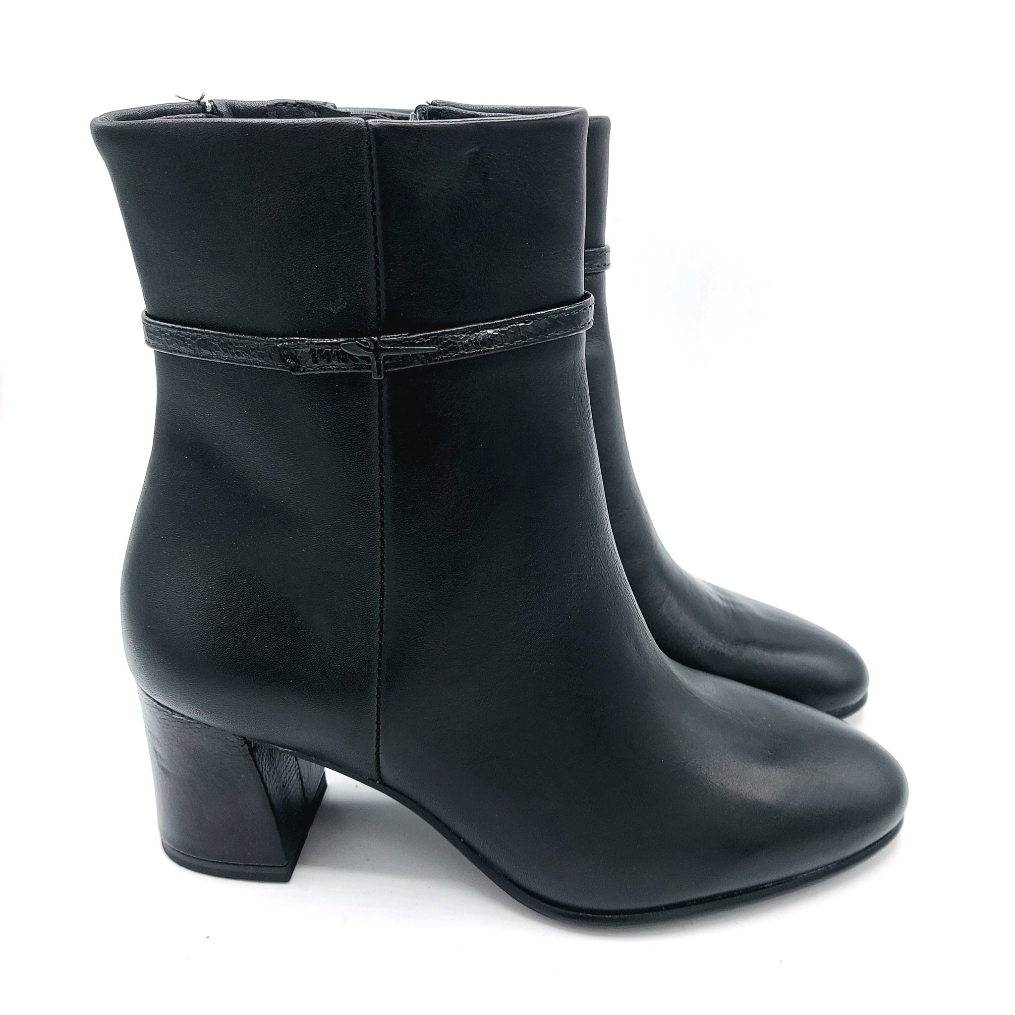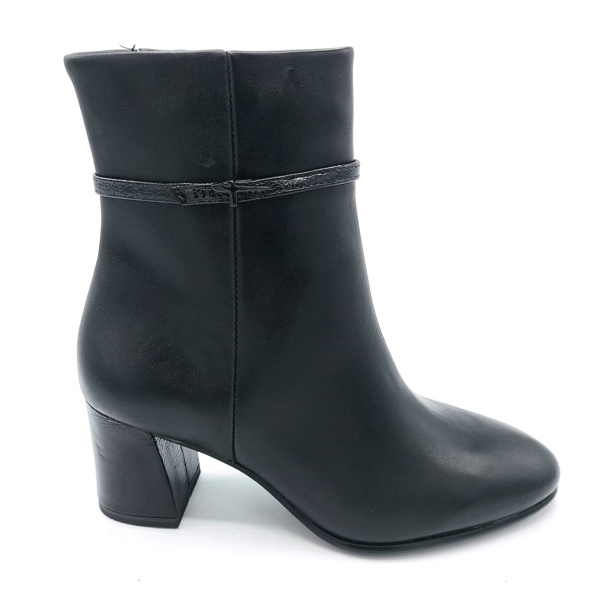 Questo stivaletto donna in morbida pelle nero unisce eleganza e comfort grazie alla sua fascetta delicata con logo e al tacco comodo di 7 cm, ideale per accompagnarti in ogni occasione con stile senza rinunciare al benessere.