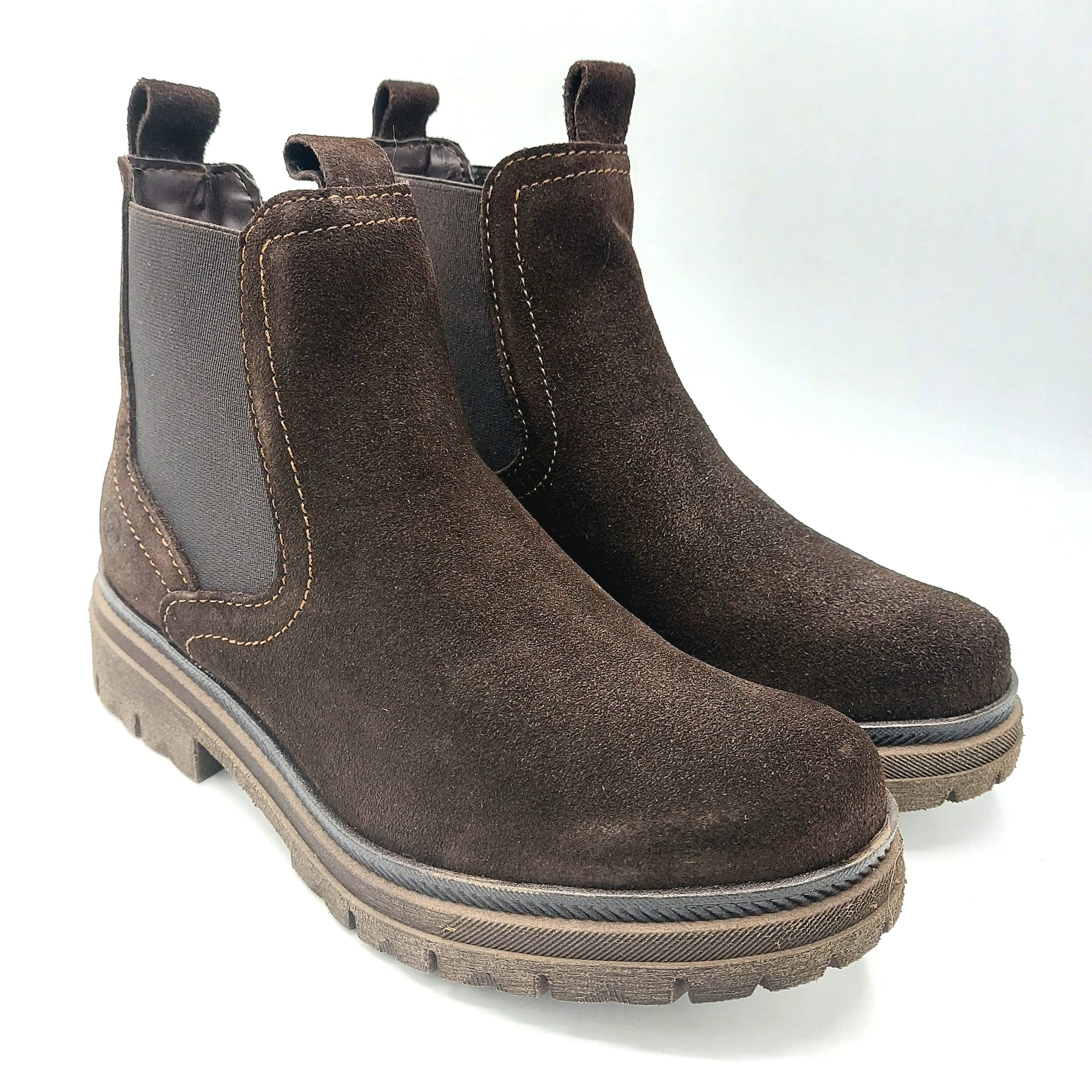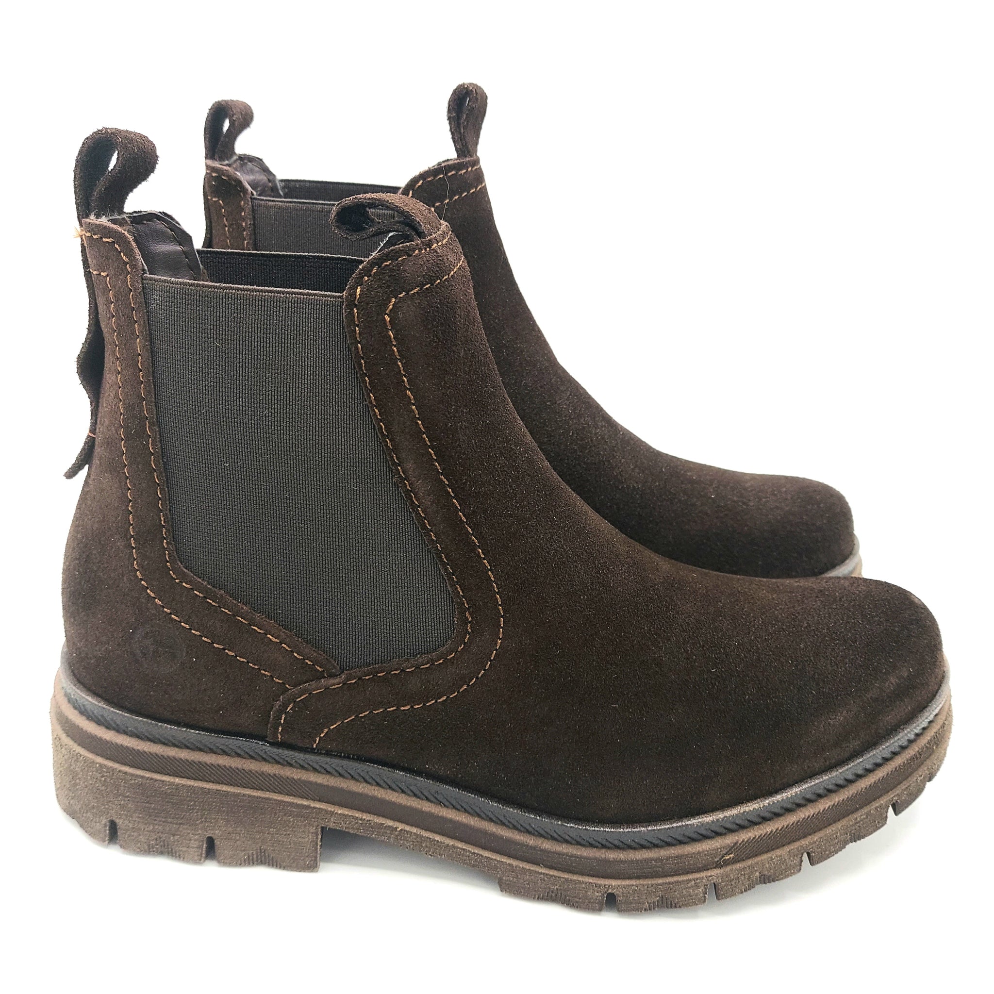 Stivaletto Beatles in pelle scamosciata marrone che non passa inosservato. Gli elastici laterali garantiscono una calzata impeccabile e senza compromessi, mentre la silhouette audace del modello Beatles ti permette di osare con stile. Perfetto per chi vuole un'alternativa ribelle ai classici, questo Tamaris combina comfort e personalità in un'unica scarpa. Indossalo con sicurezza e fai la differenza.