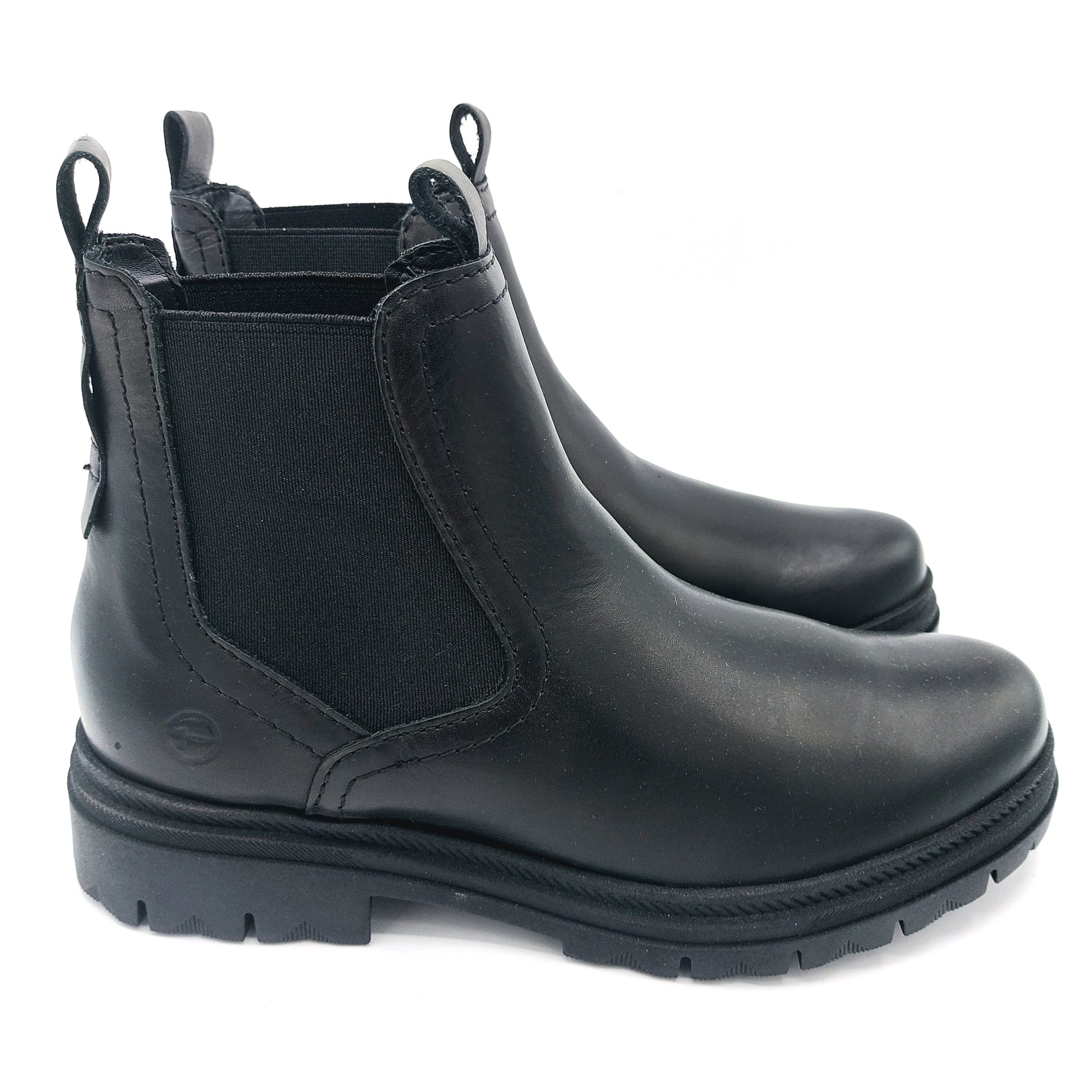 Stivaletto Beatles in pelle nero che non passa inosservato. Gli elastici laterali garantiscono una calzata impeccabile e senza compromessi, mentre la silhouette audace del modello Beatles ti permette di osare con stile. Perfetto per chi vuole un'alternativa ribelle ai classici, questo Tamaris combina comfort e personalità in un'unica scarpa. Indossalo con sicurezza e fai la differenza.