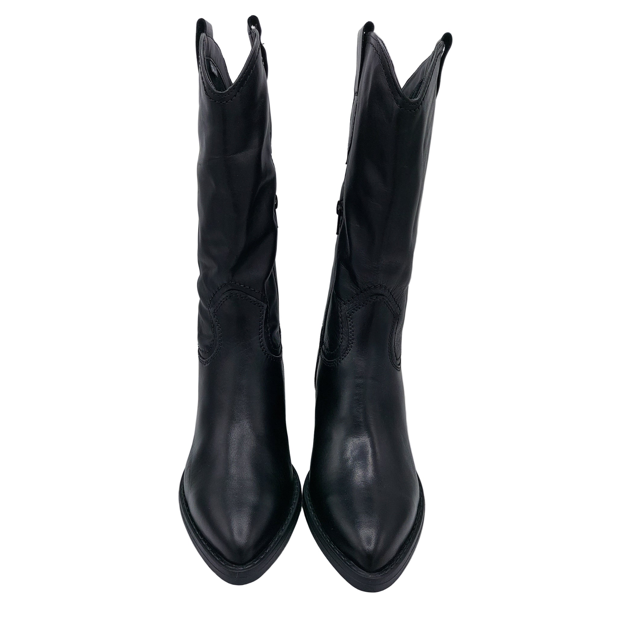 Stivale texano in pelle nera con mezza cerniera laterale, perfetto per chi vuole osare con uno stile western audace e inconfondibile. La silhouette classica del texano si reinventa con dettagli moderni e una vestibilità impeccabile. La cerniera facilita l'indossamento senza compromessi sulla struttura robusta e affidabile. Un must-have per chi non teme di distinguersi con personalità e carattere.