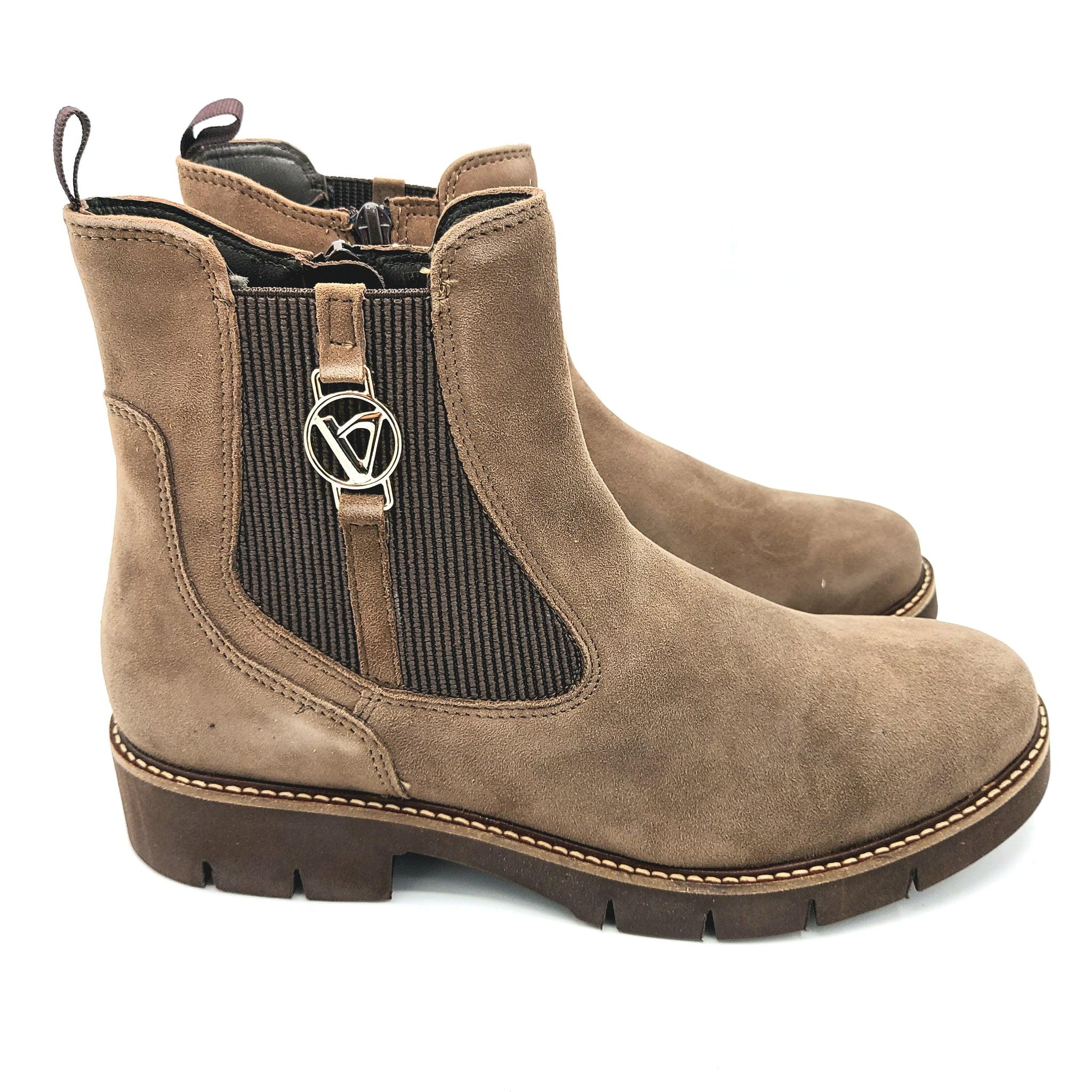 Questo stivaletto basso Valleverde 17182A in pelle scamosciata taupe combina comodità e stile. Dotato di cerniera per una calzata facile e di un elastico con logo che assicura una vestibilità aderente, è perfetto per chi cerca un modello versatile da indossare tutti i giorni con comfort e un tocco di eleganza discreta.