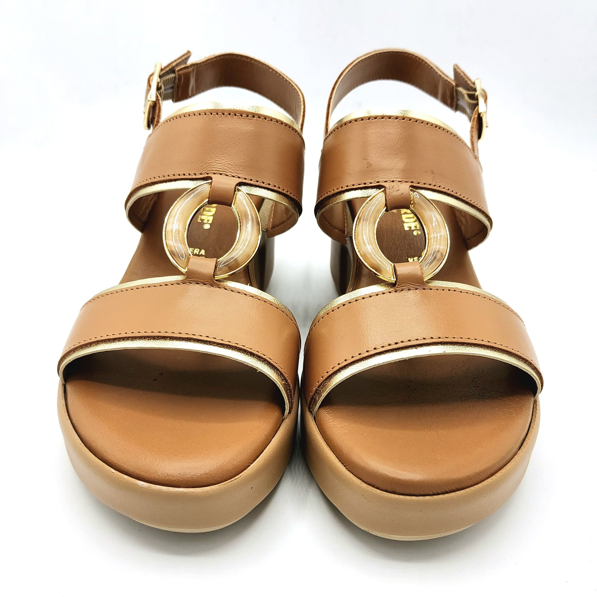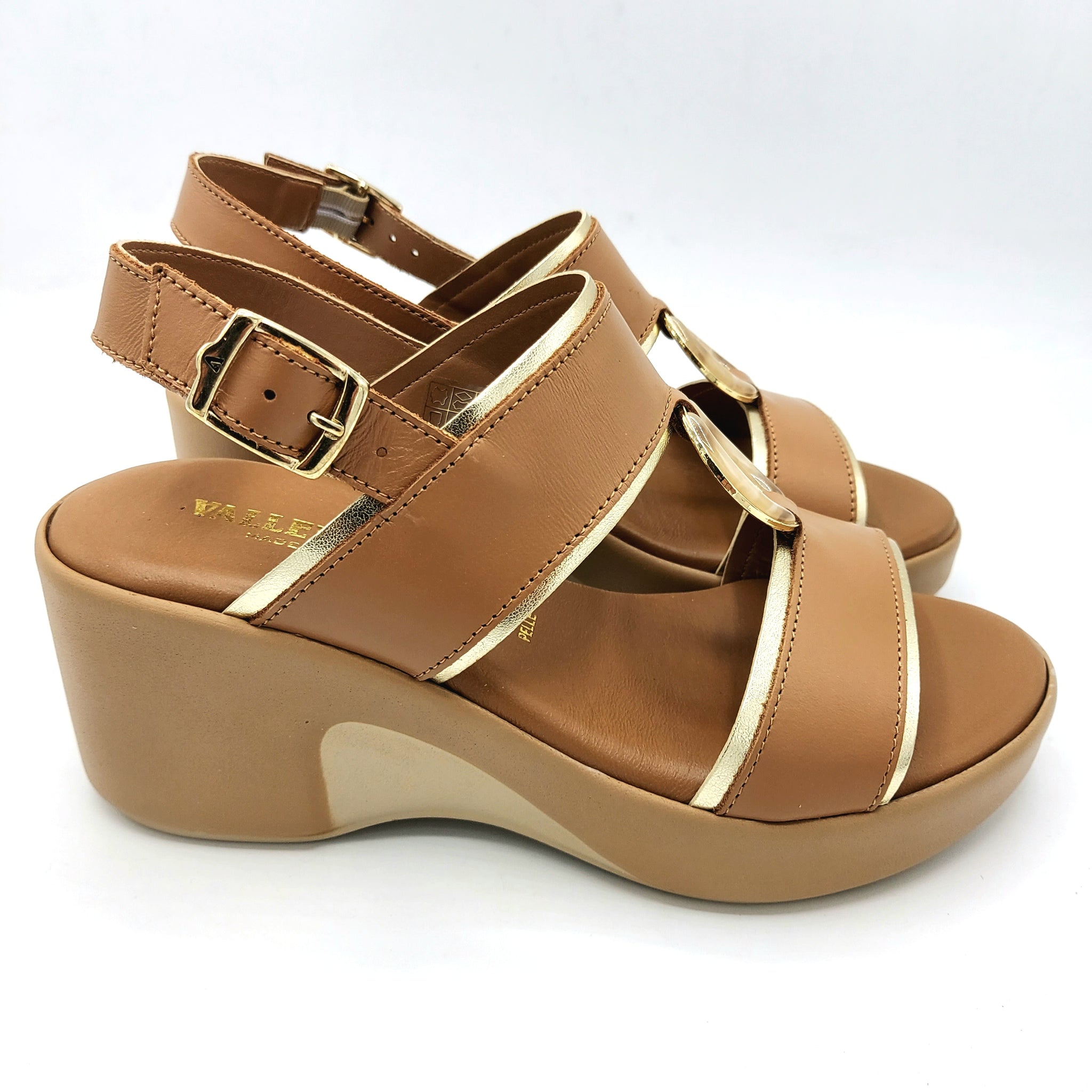 Sandalo elegante in pelle cuoio con decorazione centrale che cattura lo sguardo. La zeppa di 6,5 cm regala un'altezza discreta mantenendo il massimo comfort durante la giornata. Perfetto per look casual e semi-formali, si abbina facilmente a qualsiasi outfit primaverile ed estivo. Una scelta versatile per chi ricerca stile e praticità.