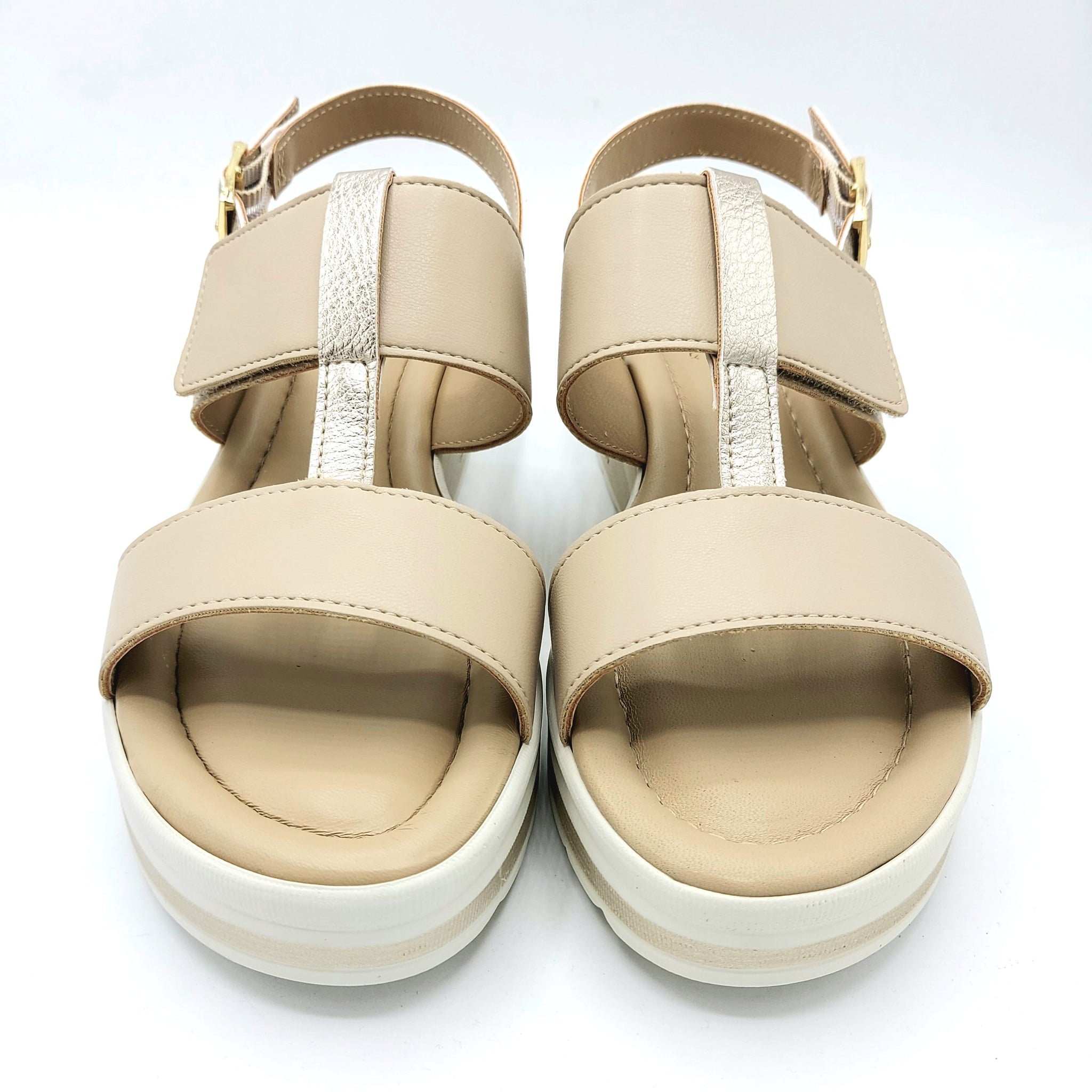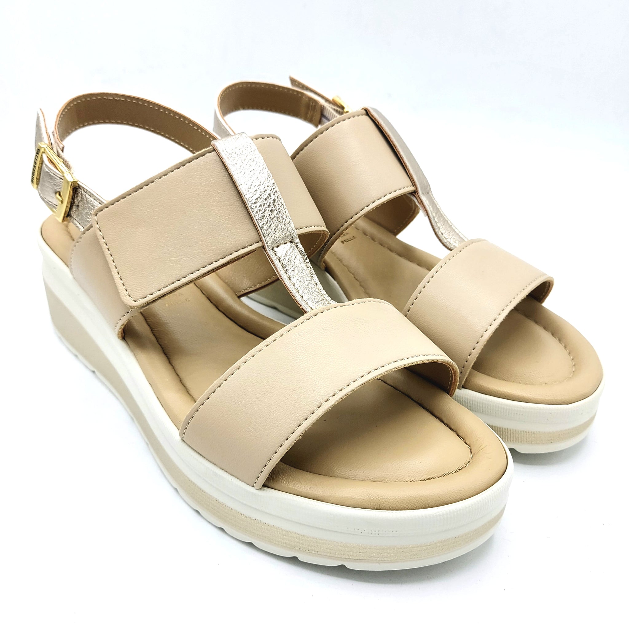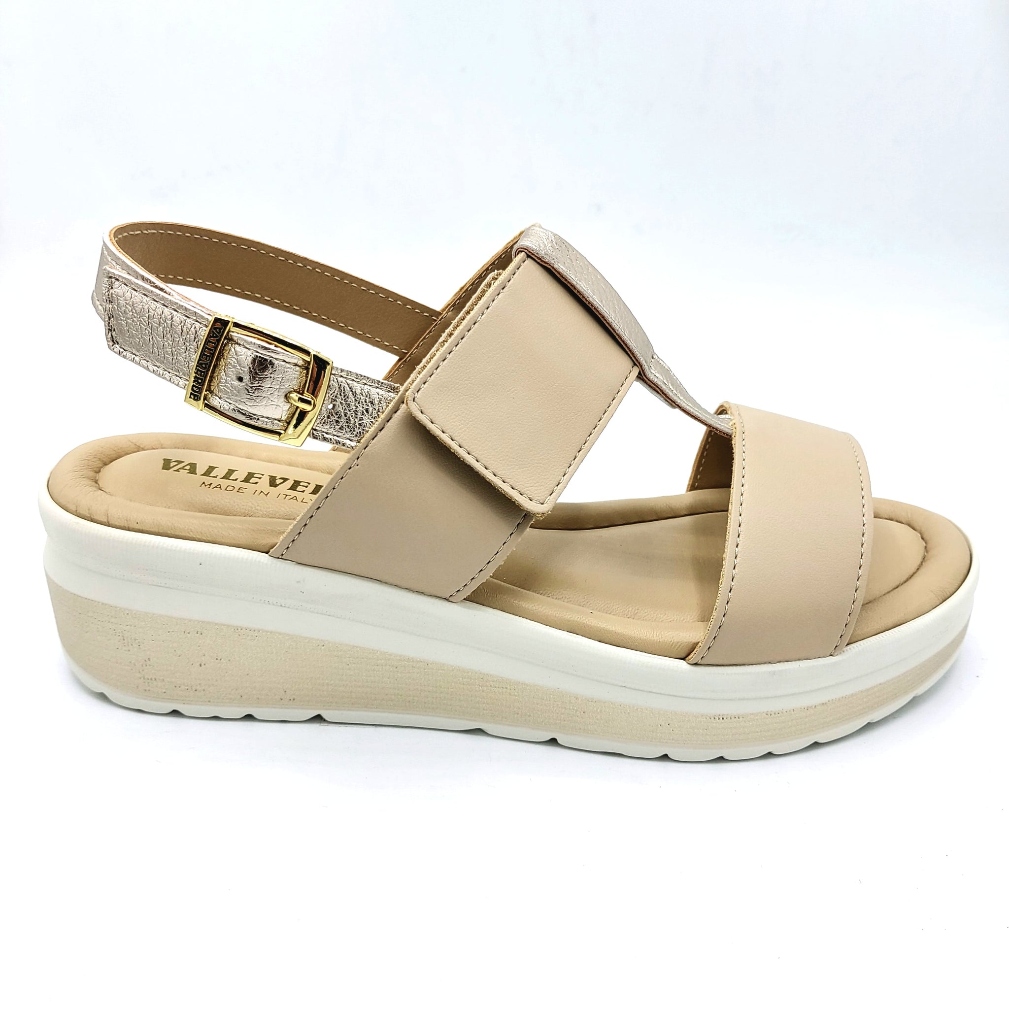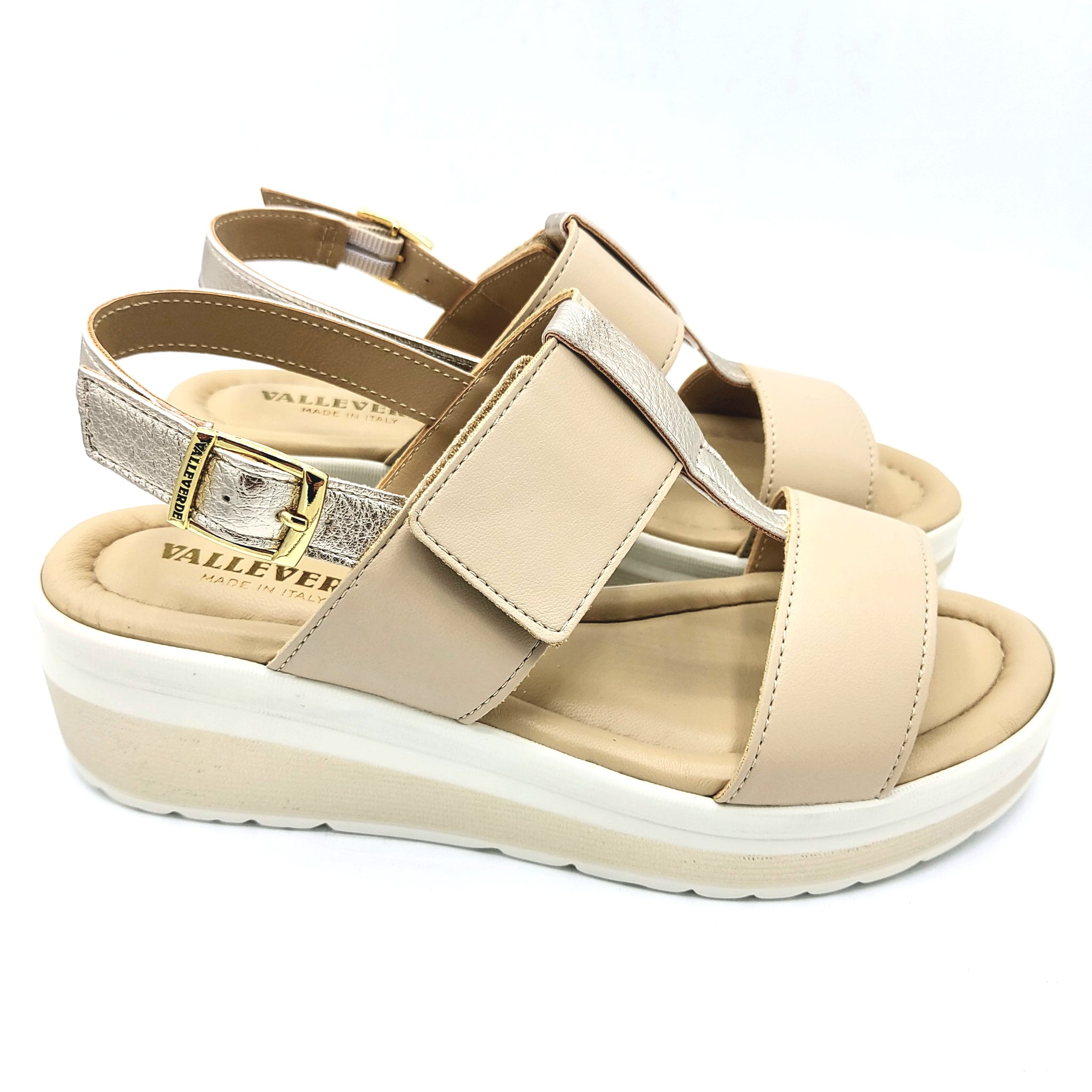 Valleverde VMI102M sabbia con riporti platino sandalo con doppia fascia di cui una con velcro e sottopiede imbottito