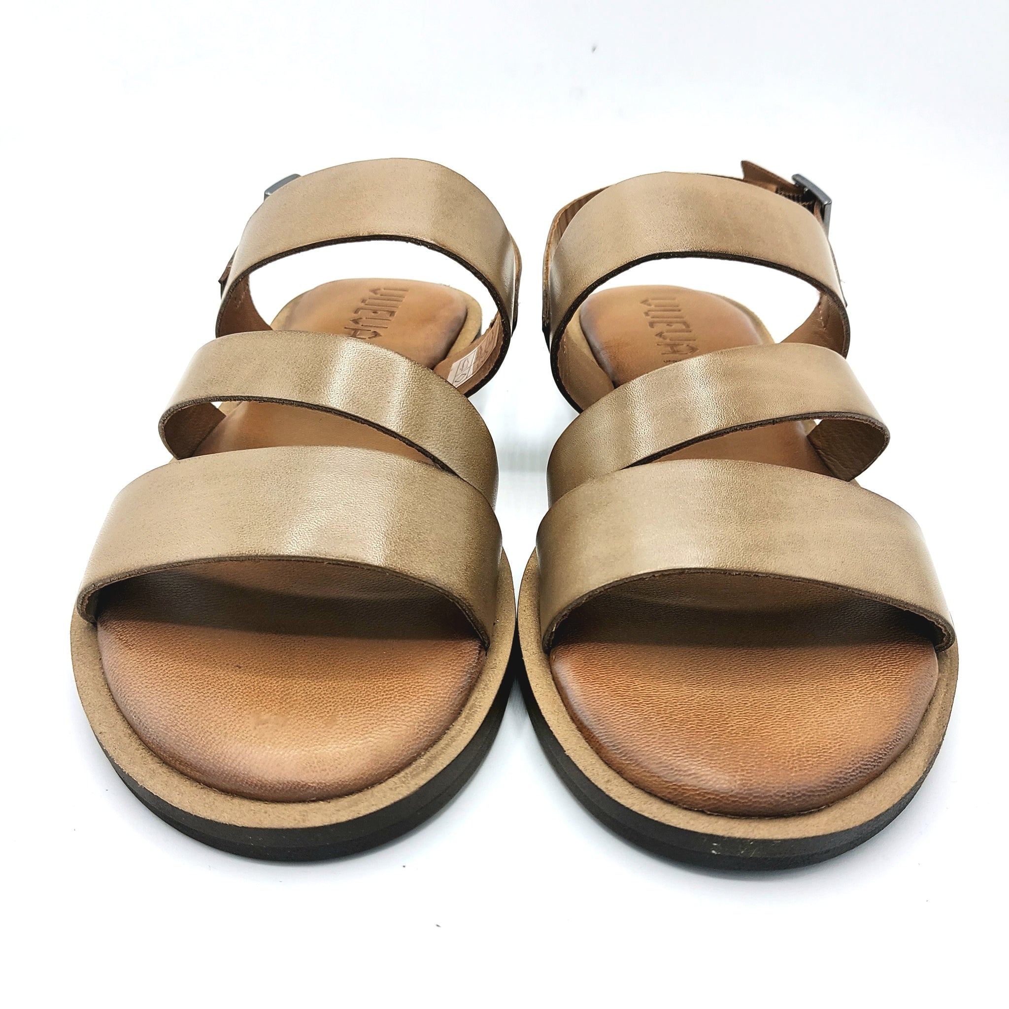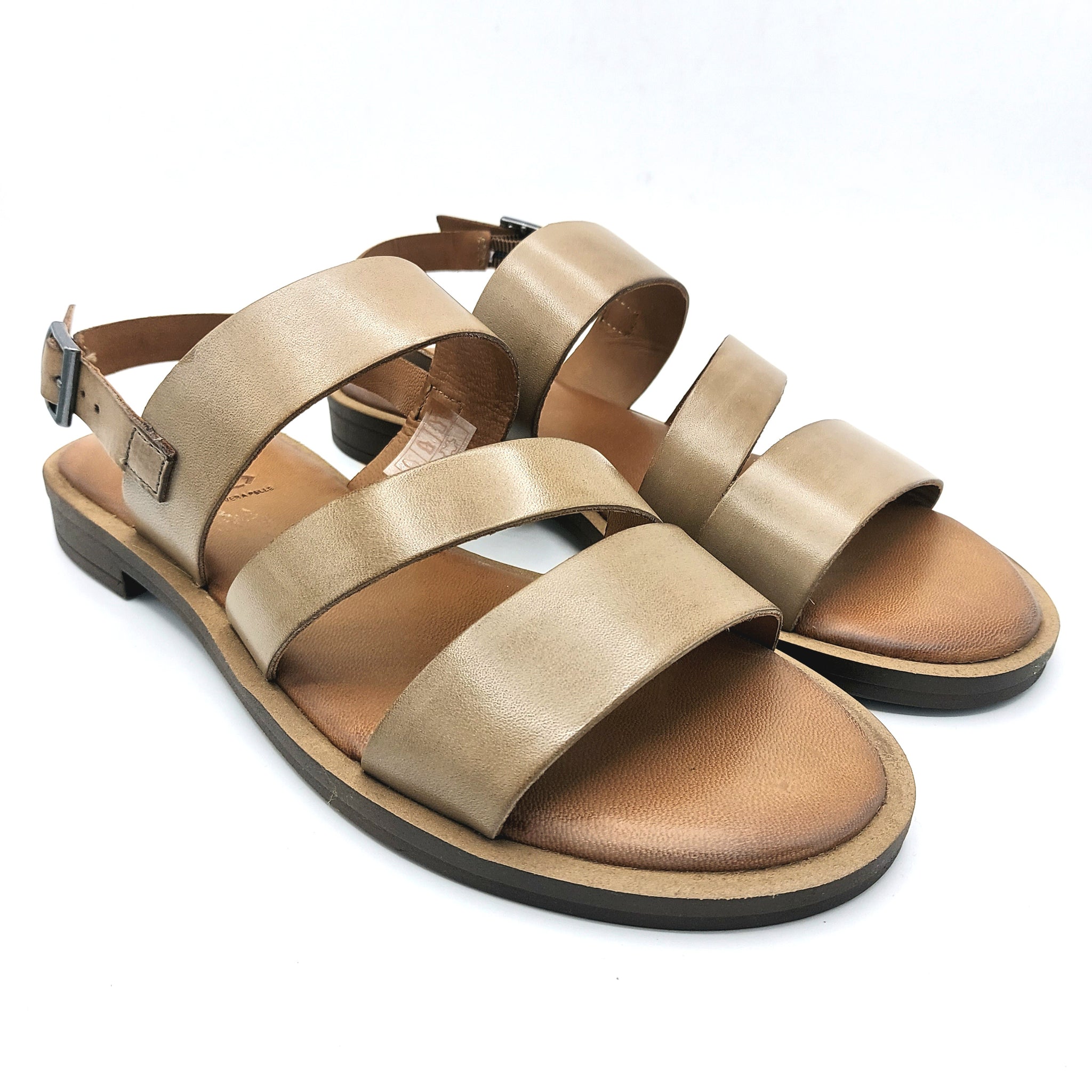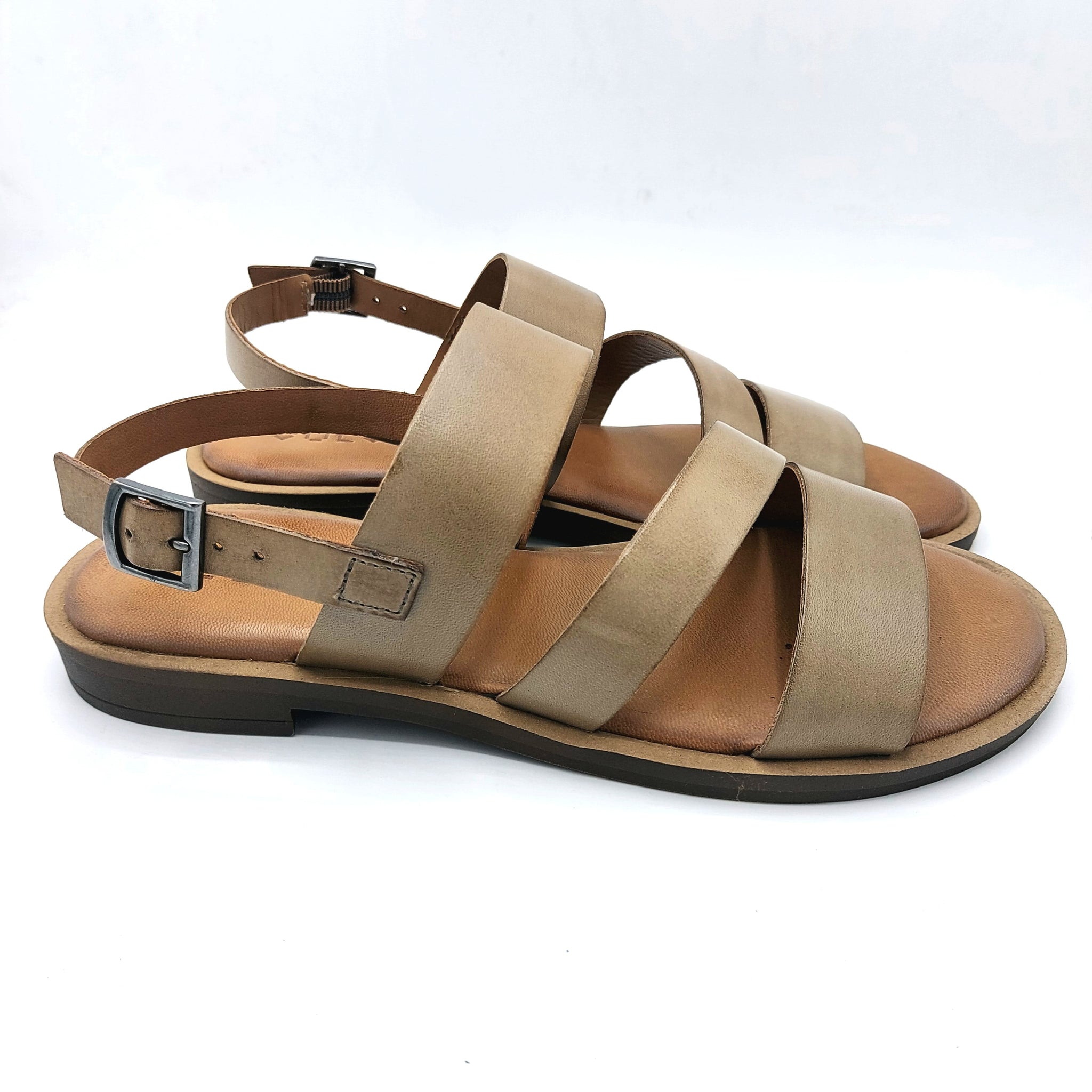 Sandalo basso in pelle con tripla fascia frontale che avvolge il piede con eleganza e comfort. La chiusura regolabile posteriore consente una vestibilità personalizzata per ogni esigenza. Design versatile e minimalista, perfetto per l'uso quotidiano in ogni stagione. Ideale per chi ricerca praticità senza compromessi stilistici.
