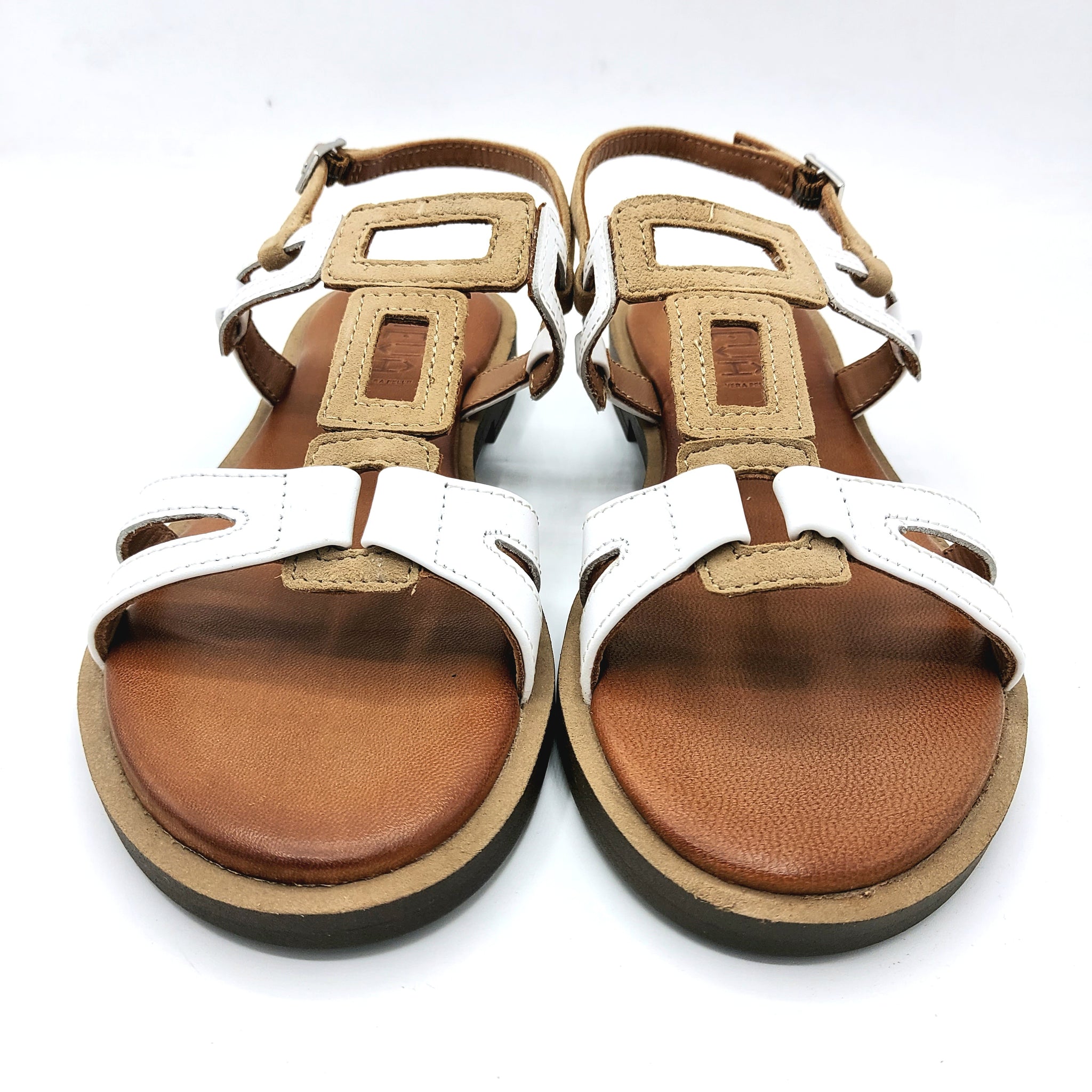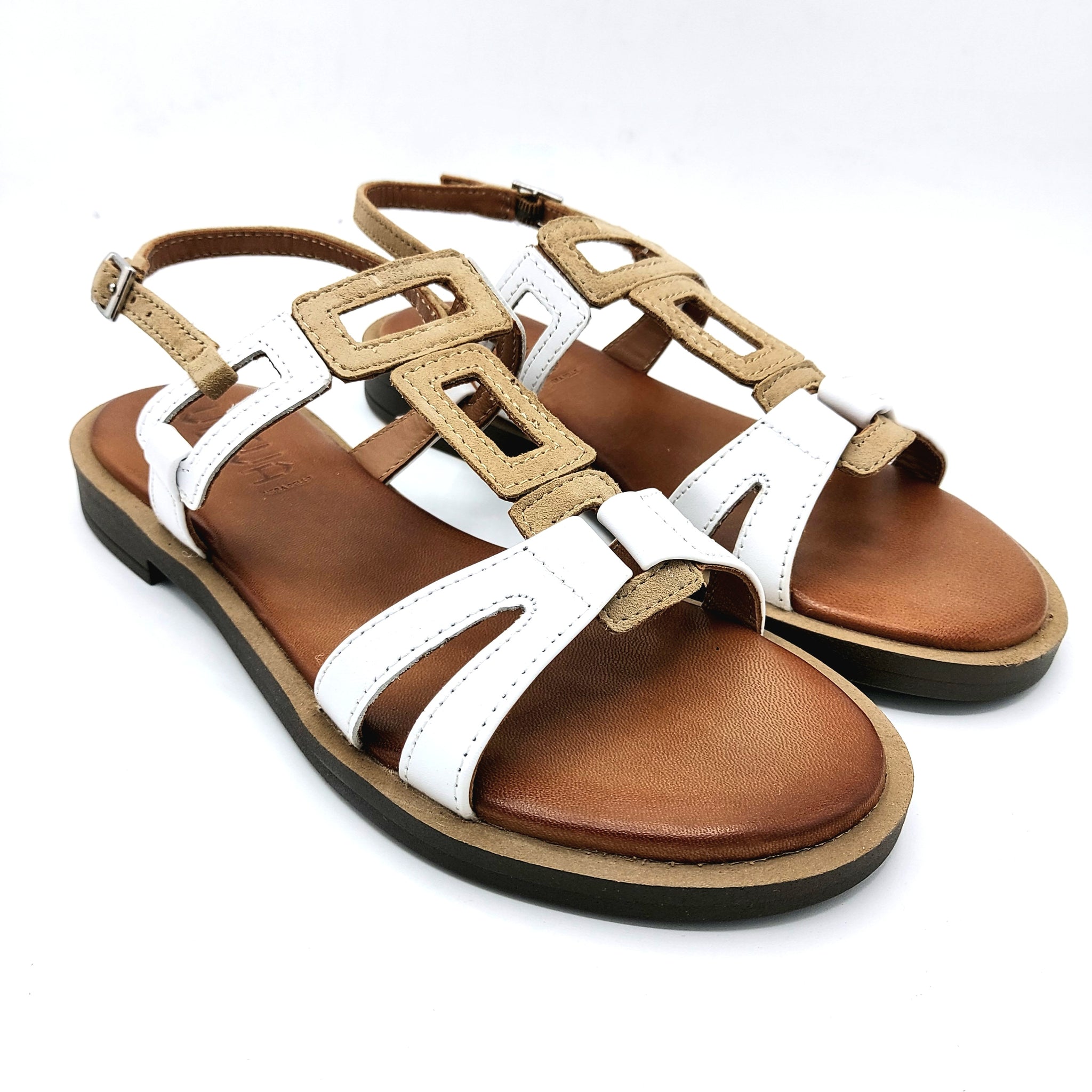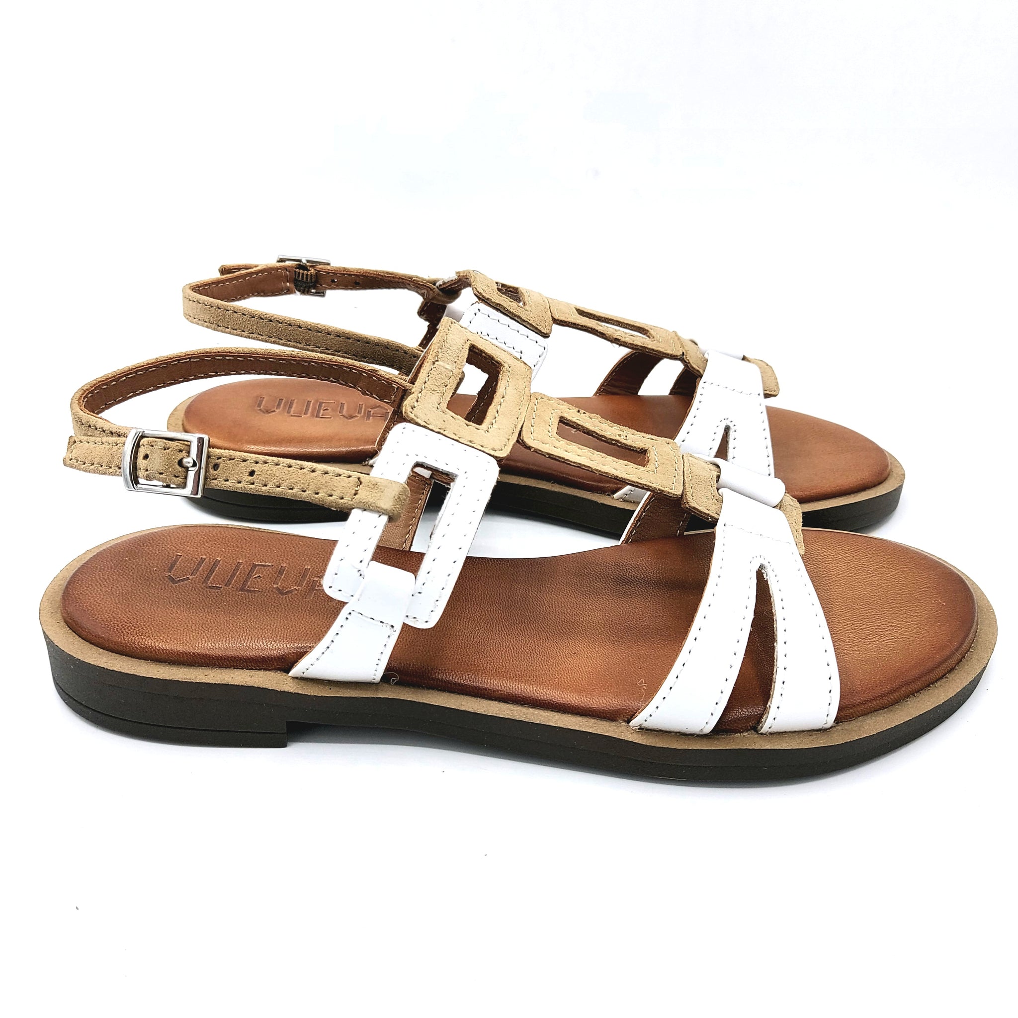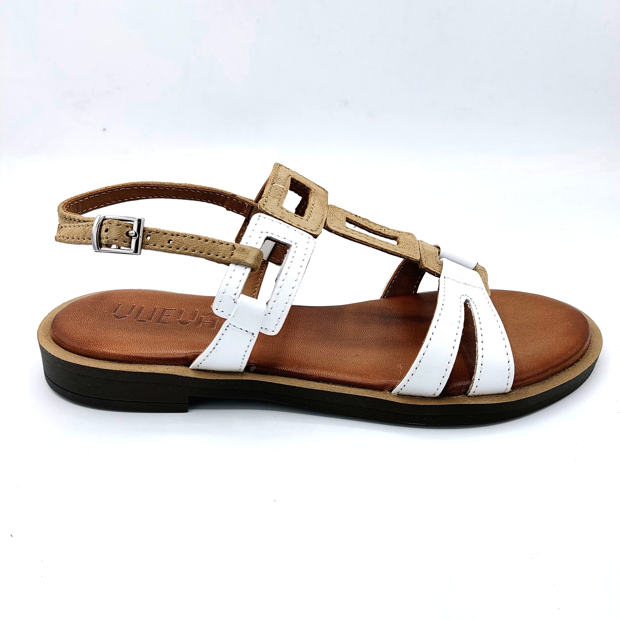 Vueva WD425R33 beige e bianco sandalo basso in pelle e pelle scamosciata con sottopiede imbottito